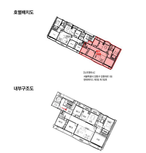 본건은 서울특별시 강동구 성내동 460-1 현대제이드 제7층 제702호