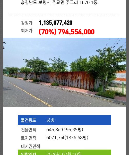 서천공장경매 서천군 비인면 관리 563-2 1동 №2025 타경 924