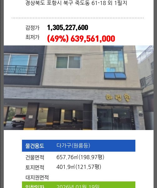 본건은 경상북도 포항시 북구 흥해읍 약성리 168-1 외 1필지