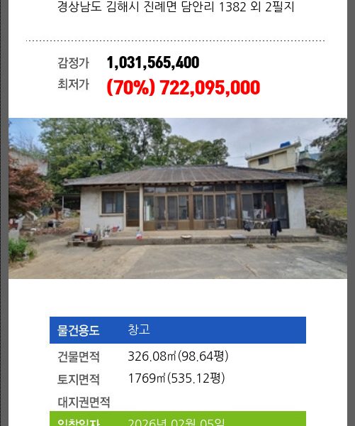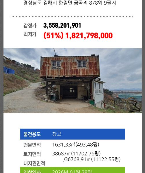 김해공장경매 김해시 주촌면 망덕리 872-4 №2024 타경 116177