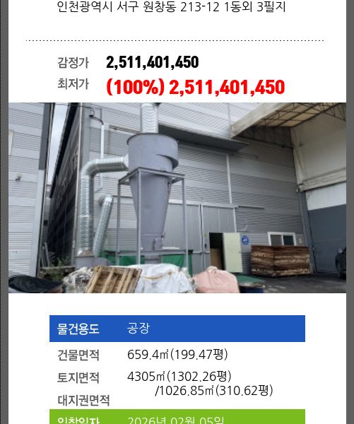 본건은 인천광역시 서구 오류동 1610-1 인천표면처리센터공장동 제8층 제801호