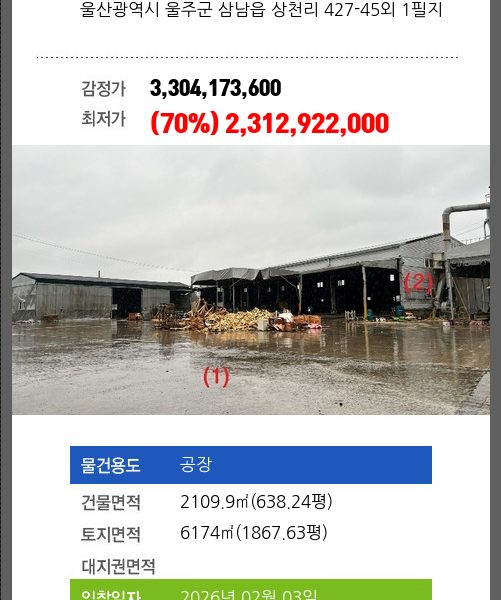 울주시설경매 울주군 삼남읍 교동리 1562-1 제1동호 №2024 타경 9527