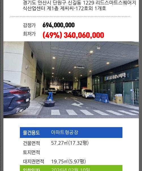 | 용도 | 공장 | 채권자 | 중** | 감정가 | 7,618,240,000 |