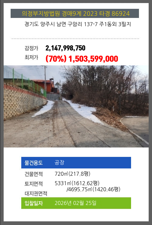 본건은 경기도 양주시 남면 구암리 137-7 주1동외 3필지