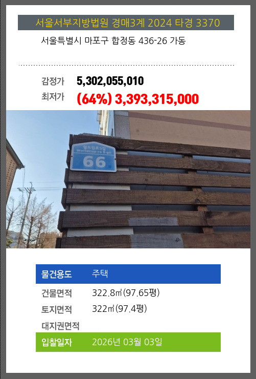 마포주택경매 마포구 합정동 436-26 가동 №2024 타경 3370