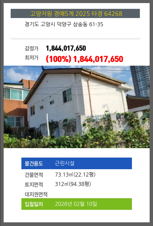 | 용도 | 근린시설 | 채권자 | 고** | 감정가 | 1,844,017,650 |