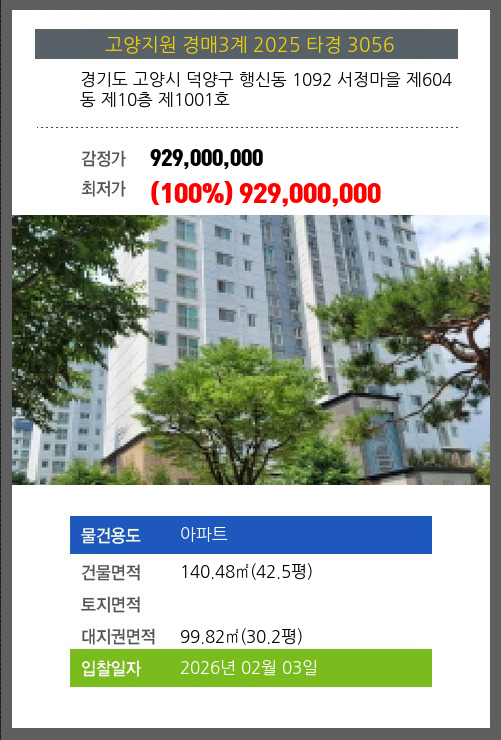 본건은 경기도 고양시 덕양구 행신동 1092 서정마을 제604동 제10층 제1001호