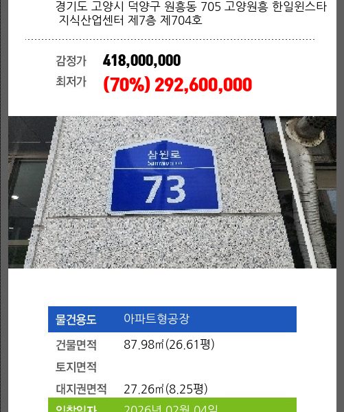 건물면적 84.86㎡ (25.67평) 채무자 전** 최저가 (70%) 300,300,000