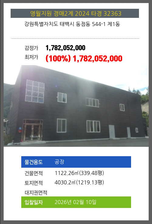 태백공장경매 태백시 동점동 544-1 제1동 №2024 타경 32363