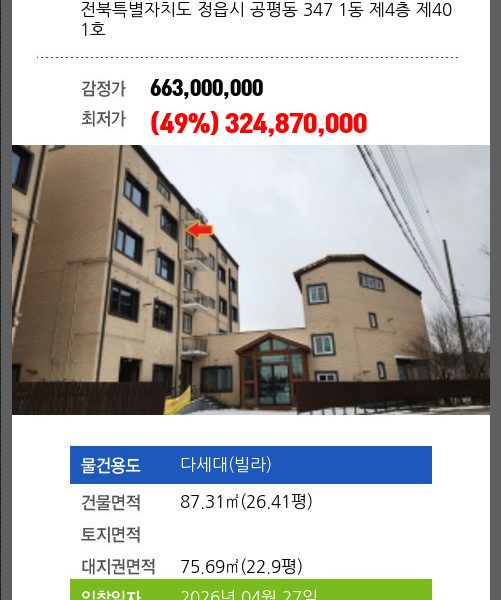 본건은 전북특별자치도 정읍시 공평동 347 1동 제4층 제402호