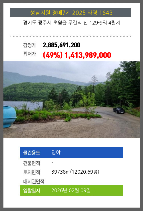 광주임야경매 광주시 초월읍 무갑리 산 129-9외 4필지 №2025 타경 1643