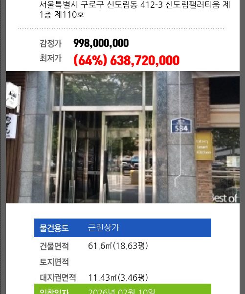 본건은 서울특별시 구로구 신도림동 412-3 신도림팰러티움 제1층 제111호