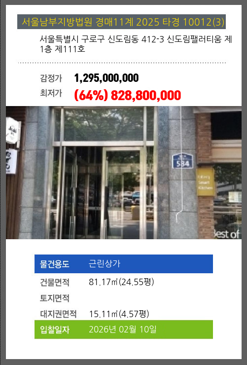 구로상가경매 구로구 신도림동 412-3 신도림팰러티움 제1층 제111호 №2025 타경 10012(3)