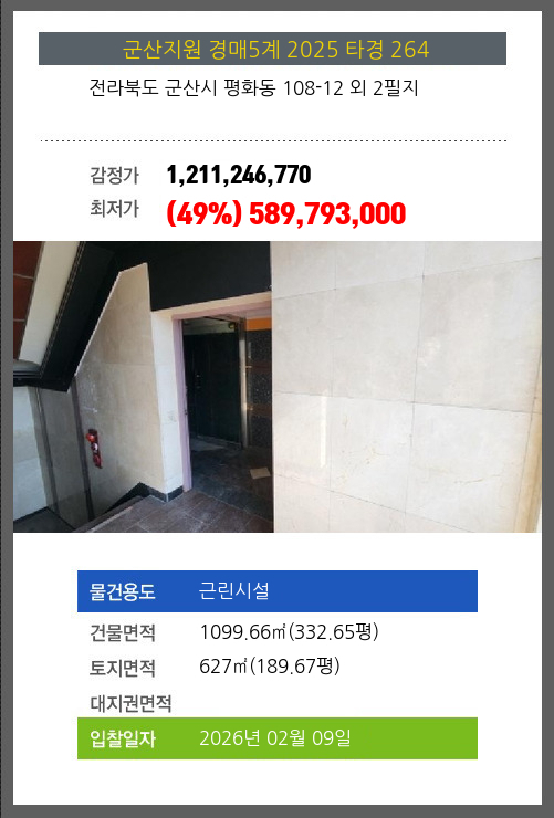 | 소재지 | [지번] 전라북도 군산시 평화동 108-12 외 2필지 [도로명 주소] 전라북도 군산시 평화길 49 외 2필지 |
