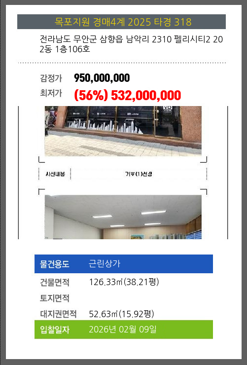 무안상가경매 무안군 삼향읍 남악리 2310 펠리시티2 202동 1층106호 №2025 타경 318