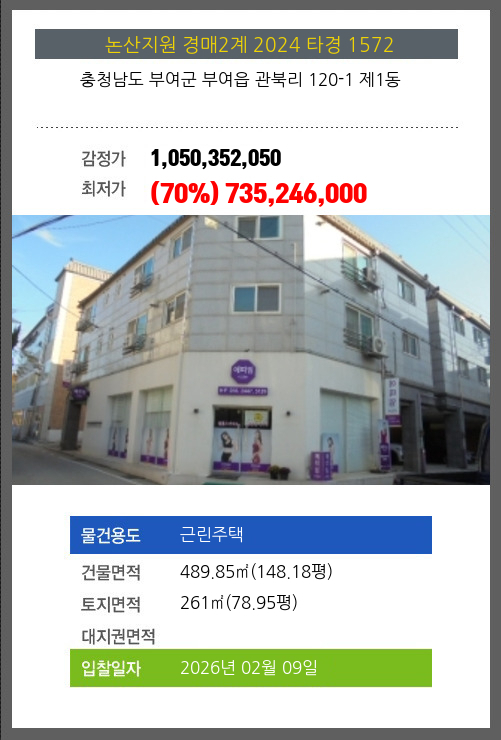 부여주택경매 부여군 부여읍 관북리 120-1 제1동 №2024 타경 1572