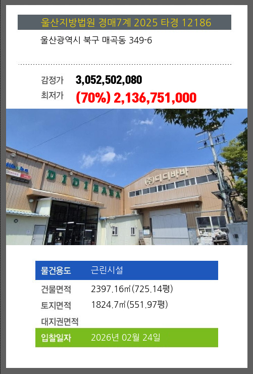 북시설경매 북구 매곡동 349-6 №2025 타경 12186