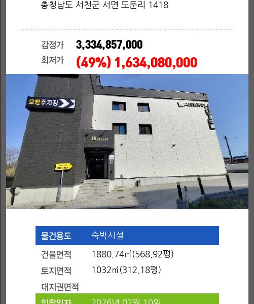 | 신건 | 2026-01-06 | 1,713,963,480 | 유찰 |