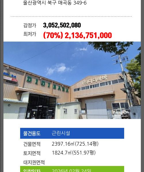 | 신건 | 2025-08-12 | 2,600,076,320 | 유찰 |