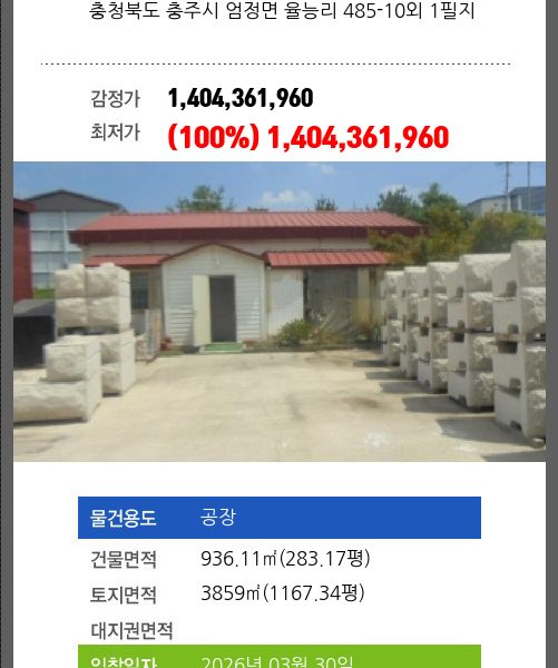 | 용도 | 공장용지 | 채권자 | 염** | 감정가 | 1,667,610,900 |