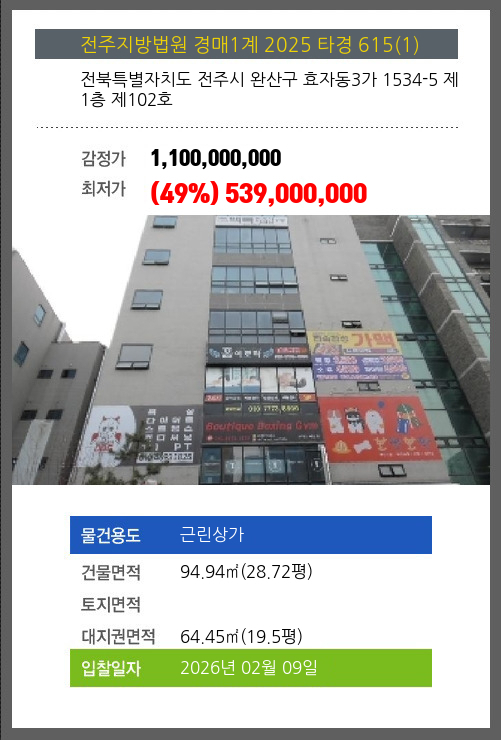 본건은 전북특별자치도 전주시 완산구 효자동3가 1534-5 제1층 제102호