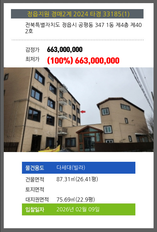 본건은 전북특별자치도 정읍시 공평동 347 1동 제4층 제402호