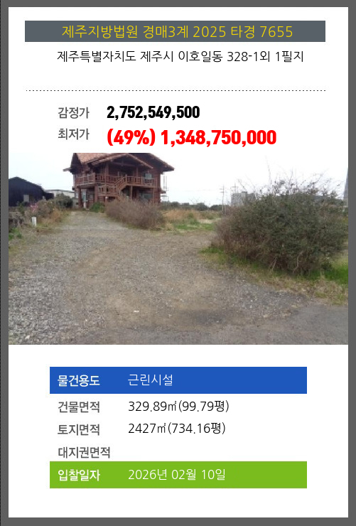 제주시설경매 제주시 이호일동 328-1외 1필지 №2025 타경 7655
