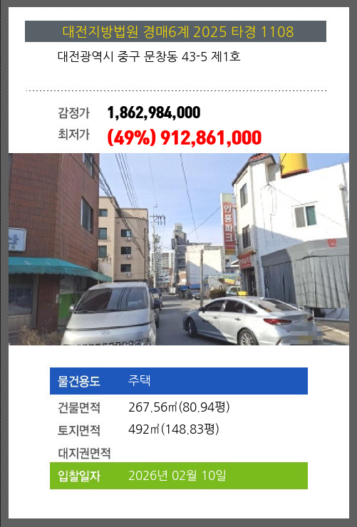 중주택경매 중구 문창동 43-5 제1호 №2025 타경 1108