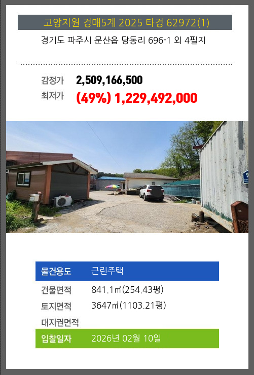 본건은 경기도 파주시 문산읍 당동리 696-1 외 4필지