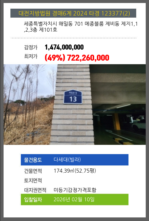 | 최초경매일 | 2026-02-10 | 배당종기일 | 2025-03-11 | 경매개시일 | 2024-12-05 |