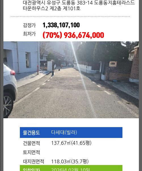 | 대지권 | 미등기감정가격포함 | 소유자 | ㈜** | 보증금 | (10%) 72,226,000 |