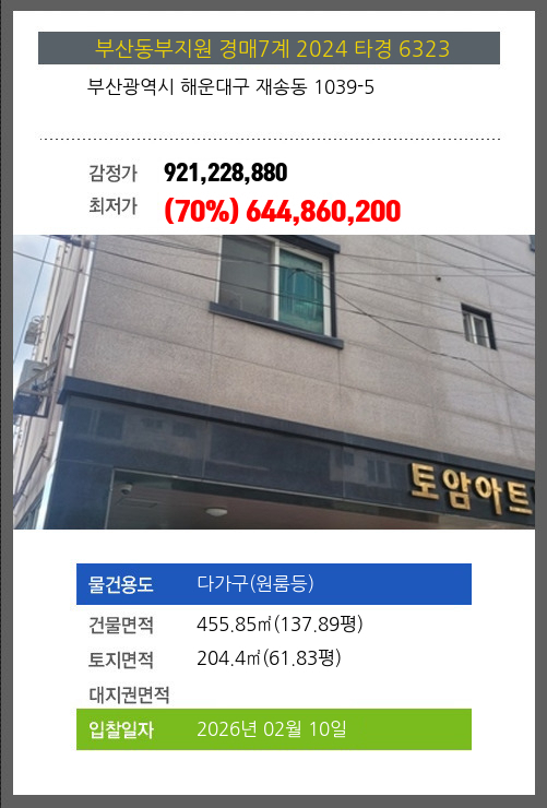 본건은 부산광역시 해운대구 재송동 1039-5