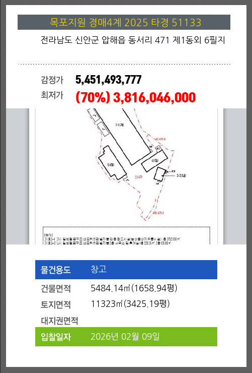 신안창고경매 신안군 압해읍 동서리 471 제1동외 6필지 №2025 타경 51133