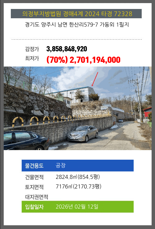 본건은 경기도 양주시 남면 한산리579-7 가동외 1필지