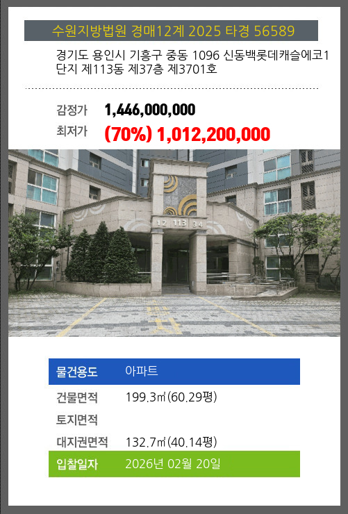 본건은 경기도 용인시 기흥구 중동 1096 신동백롯데캐슬에코1단지 제113동 제37층 제3701호