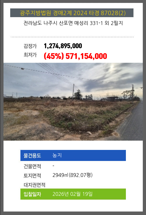 본건은 전라남도 나주시 산포면 매성리 331-1 외 2필지