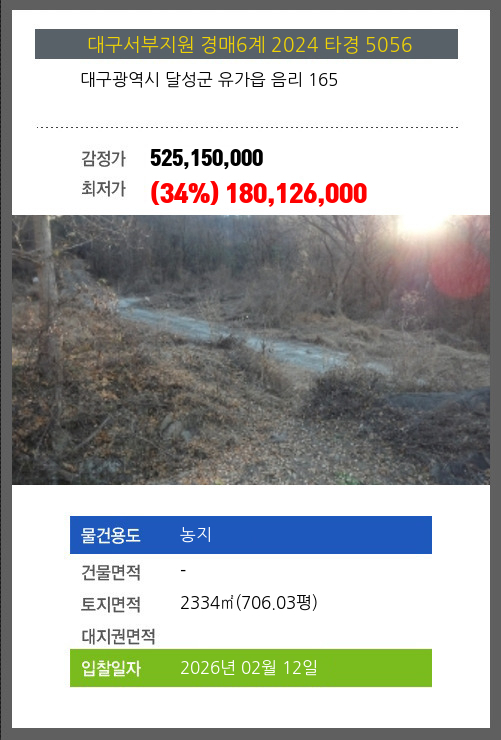 본건은 대구광역시 달성군 유가읍 음리 165