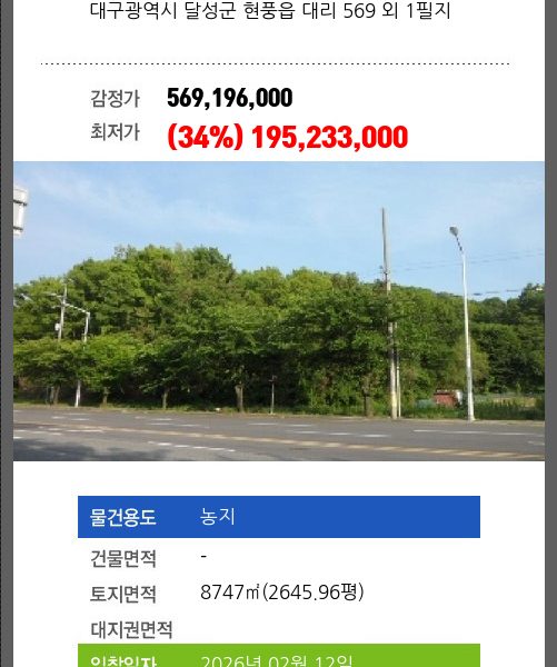 | 용도 | 농지 | 채권자 | 성** | 감정가 | 525,150,000 |