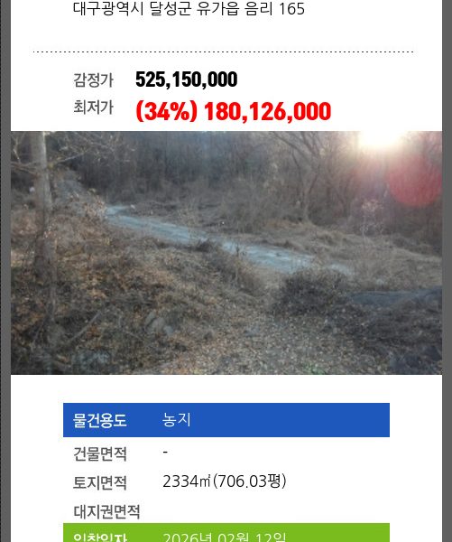 | 용도 | 농지 | 채권자 | 창** | 감정가 | 569,196,000 |