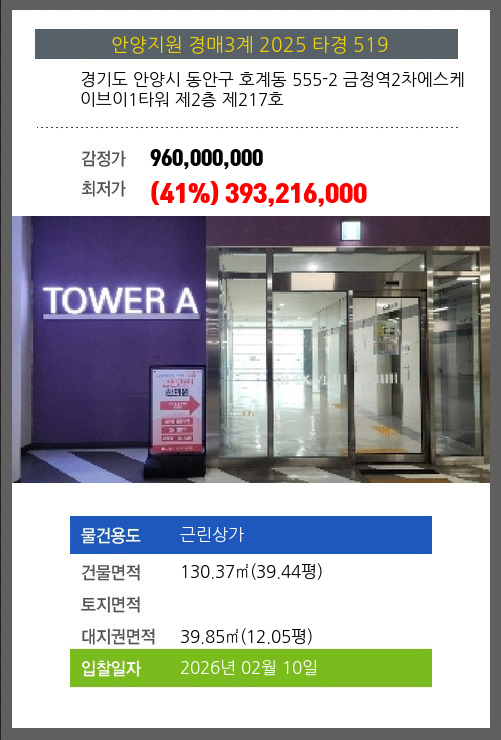 본건은 경기도 안양시 동안구 호계동 555-2 금정역2차에스케이브이1타워 제2층 제217호