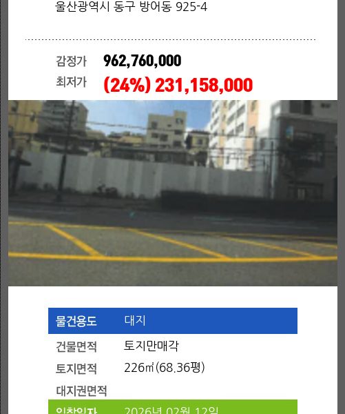 | 4차 | 2026-01-15 | 268,367,000 | 유찰 |
