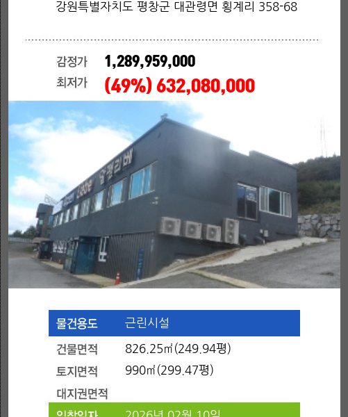 | 매각대상 | 토지만매각, 법정지상권, 공유물분할경매 | 경매종류 | 공유물분할을위한경매 | 사건접수일 | 2024-12-09 |
