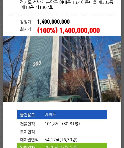 | 신건 | 2026-01-26 | 1,150,000,000 | 유찰 |