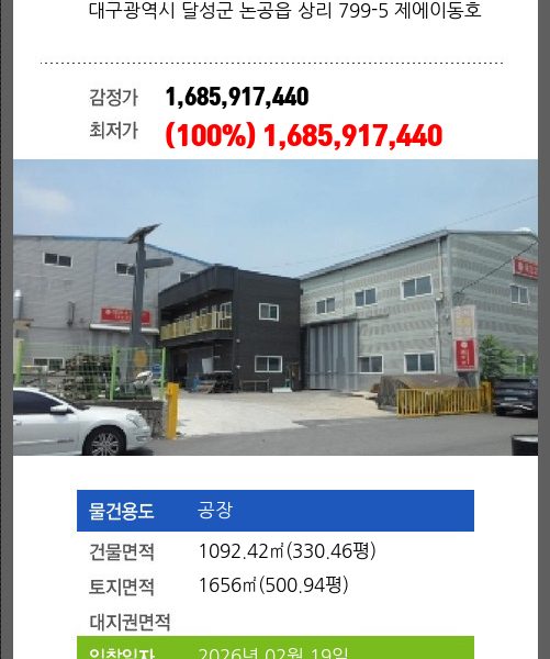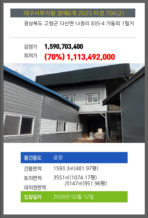 고령공장경매 고령군 다산면 나정리 835-4 가동외 1필지 №2025 타경 706(2)