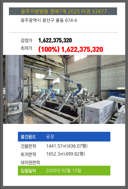 광산공장경매 광산구 용동 674-4 №2025 타경 33477