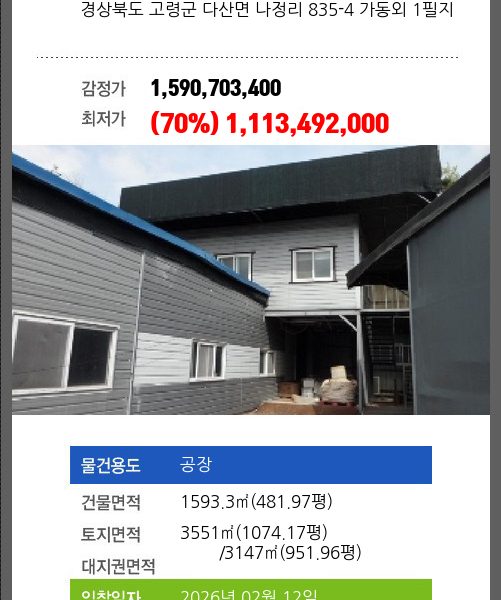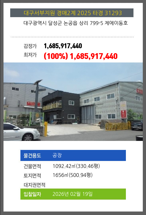 달성공장경매 달성군 논공읍 상리 799-5 제에이동호 №2025 타경 31293