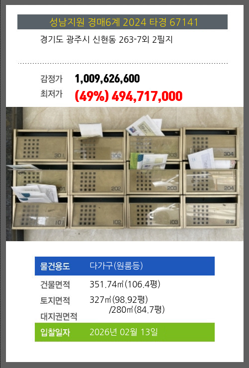 광주다가구(원룸등)경매 광주시 신현동 263-7외 2필지 №2024 타경 67141