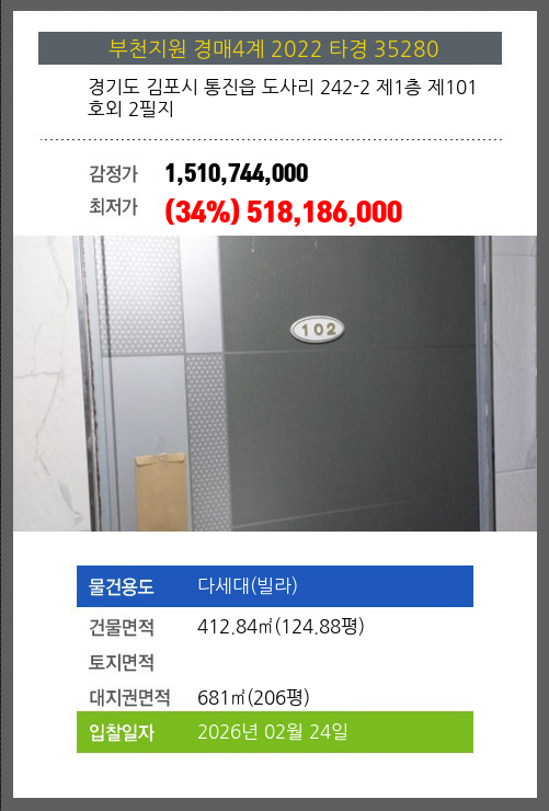 본건은 경기도 김포시 통진읍 도사리 242-2 제1층 제101호외 2필지