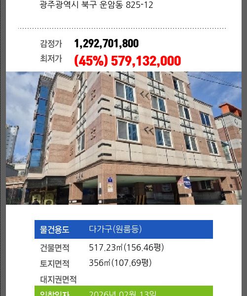 | 건물면적 | 196.99㎡ (59.59평) | 채무자 | 빛** | 최저가 | (70%) 568,400,000 |