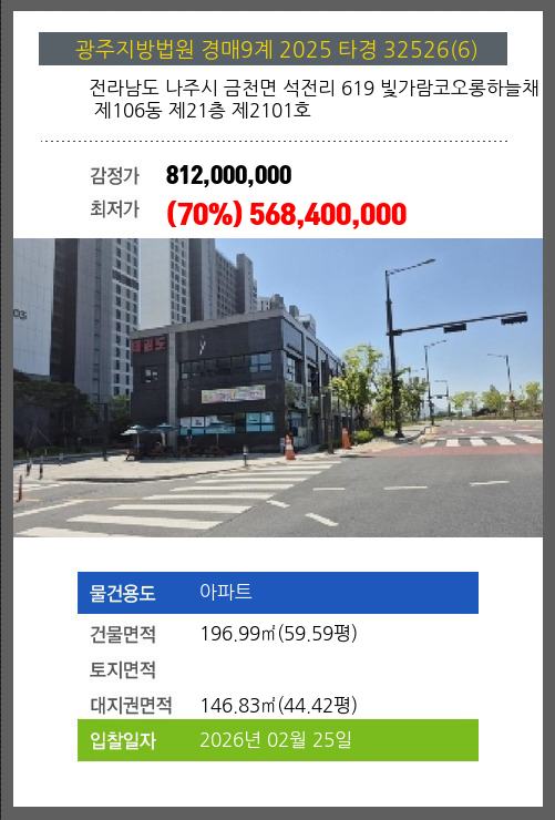 본건은 전라남도 나주시 금천면 석전리 619 빛가람코오롱하늘채 제106동 제21층 제2101호